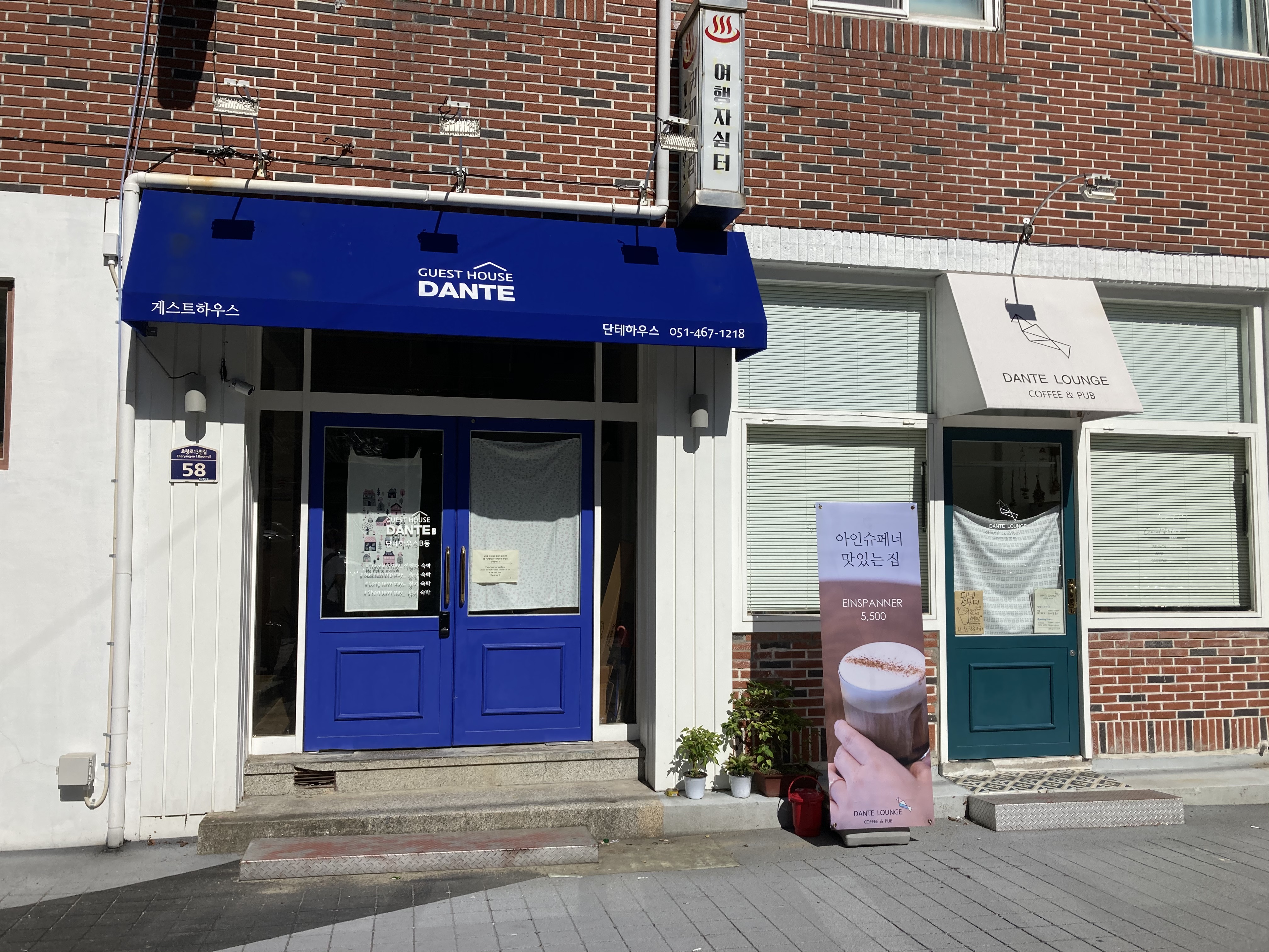 예약 한 숙소 '단테하우스'는 부산역에서 도보 7분 거리였다. 단테하우스는 구관과 신관 두 동으로 나누어져 있었다. 나와 우리 집 식구의 경우는 구관에서 하룻밤을 머물렀다. 부산역에서 숙소로 가는 길 구 백제병원 건물을 보았다. 우리 집 식구는 감성의 장소 같다고 좋아했지만, 밤에 보니 으슥함이 느껴져 나는 너무 무서웠다. 숙소에는 수건과 간단한 세면도구, 드라이기, 생수 2병이 비치되어 있었다. 숙박을 하고 난 후 짐을 맡길 수 있어, 짐을 맡기고 편하게 여행을 할 수 있었다.