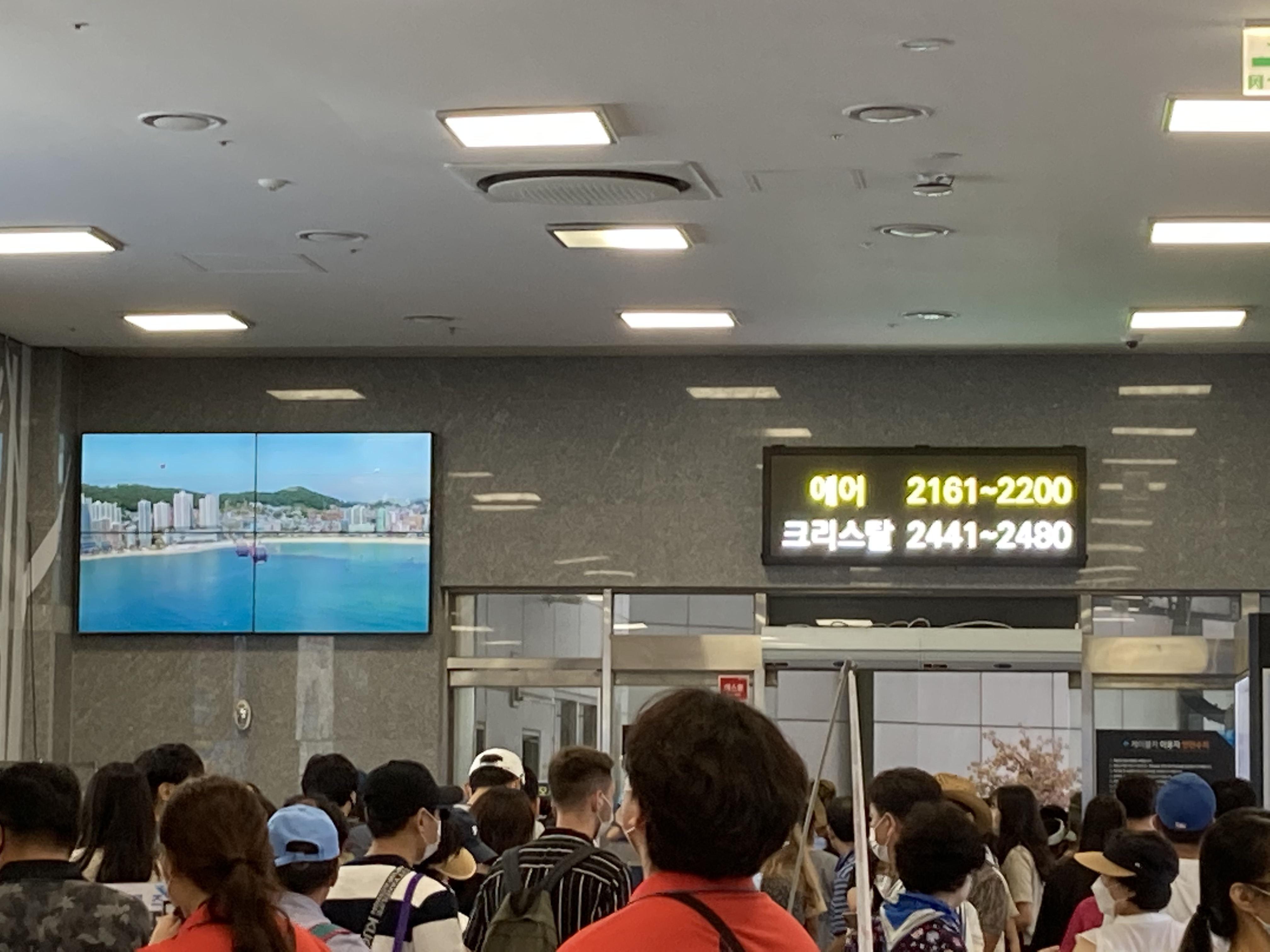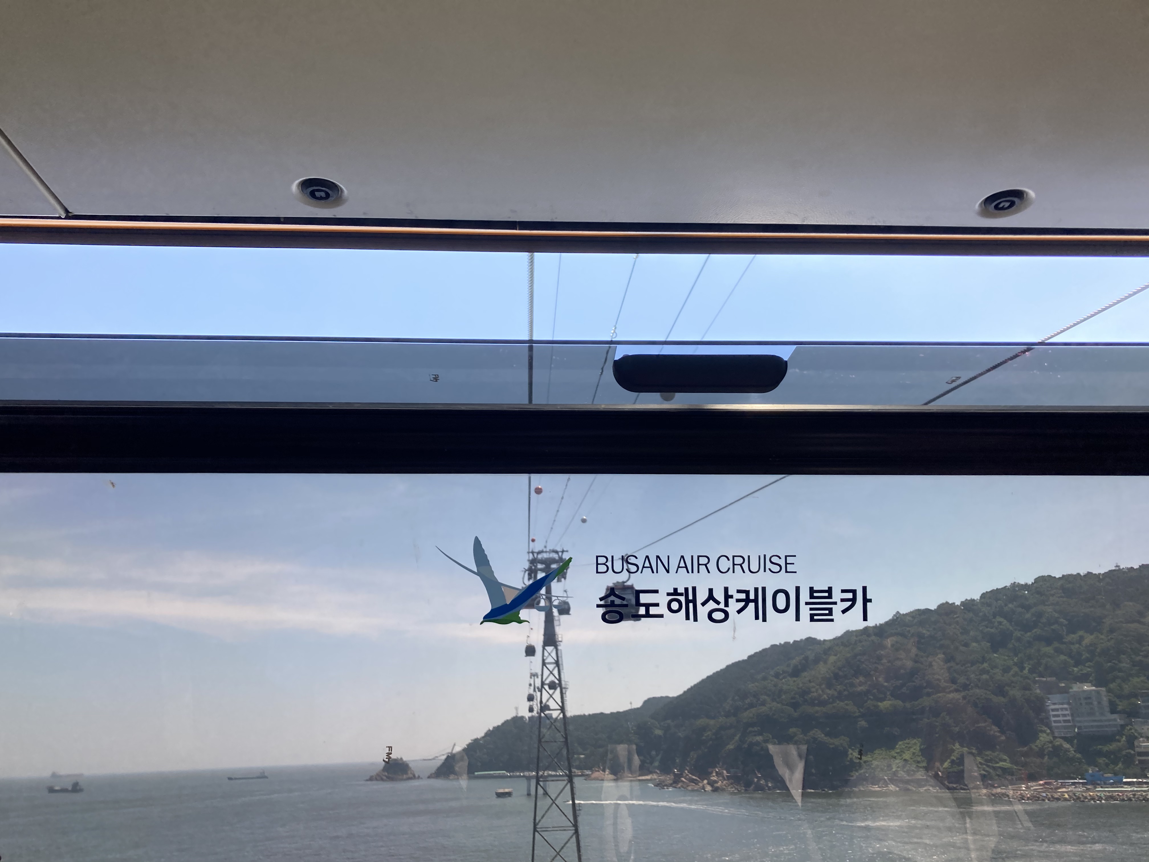 차이나타운을 지나고 나니, 땀이 범벅이 된 채로 부산역 맞은 편에서 택시를 타고 송도용궁구름다리로 목적지로 이동했다. 가는 길에 보니, 사람들이 많고 차가 붐비는 지역을 지나게 되었다. "아저씨 여기는 왜 이렇게 사람이 많아요?", "여기서 송도용궁구름다리로 가는 케이블카 타요." 우리의 목적지는 송도용궁구름다리가 맞지만 케이블카를 타고 싶었기에, 우리는 바로 그 자리에서 택시에서 하차했다. 케이블카는 일반 크루즈와 크리스탈 크루즈 선택할 수 있다. 요금은 각각 왕복 15,000원 / 20,000원이었다. 일반 크루즈와 크리스탈 크루즈 차이는 발 아래가 막혀있는 것과 뚫려있는 것의 차이였는데, 우리는 대기시간이 조금 짧은 크리스탈 크루즈를 선택했다. 케이블카 탑승 시간은 채 10분이 걸리지 않지만, 케이블카 앞으로 보이는 풍경이 아름다웠다. 케이블카에서 내려서 송도용궁구름다리를 돌아보고, 다시 케이블카를 타고 티켓을 구매했던 곳에 도착했다.